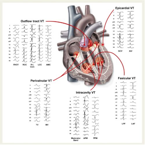 #心電図検定試験 Q-6 answer-16 このVT時の I 誘導の波形を見て下さい。 どこ起源かをI 誘導の波形から推定するのは、無理ゲーです。 12誘導の波形を総合して、VTのoriginを考えます。 https://www.researchgate.net/figure/Twelve-lead-electrocardiogram-m…